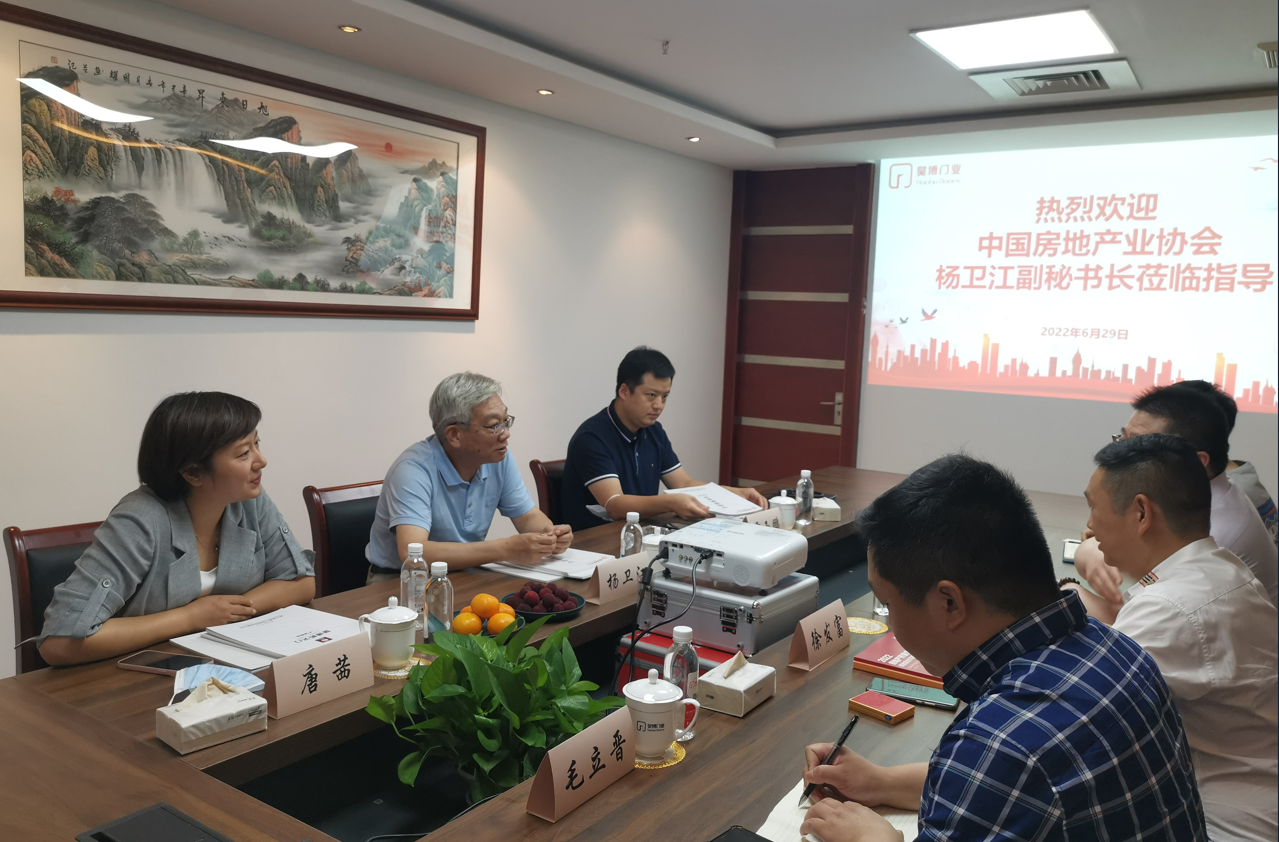 2022年6月29日下午,中国房地产业协会副秘书长杨卫江,中房协产业协作委员会副秘书长、优采平台总经理唐茜,优采平台华北总经理贾玉鹏,一行莅临浙江昊博杭州运营总部进行考察指导,浙江昊博董事长徐发富携公司相关负责人一起进行了座谈交流。